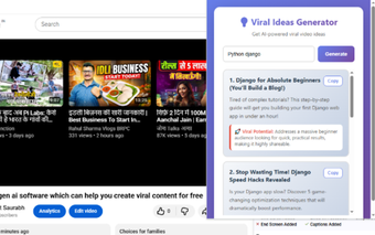 مولد أفكار يوتيوب الفيروسية هو إضافة مجانية لمتصفح كروم مصممة لمساعدة منشئي المحتوى في توليد أفكار فيديو جذابة وفيروسية لقنواتهم على يوتيوب. باستخدام تقنية الذكاء الاصطناعي المتقدمة، ينتج هذا الأداة عناوين لافتة ومفاهيم مبتكرة مصممة لأي موضوع، مما يعزز العملية الإبداعية للمستخدمين. إنها مفيدة بشكل خاص لأولئك الذين يتطلعون إلى زيادة جمهورهم وتحسين معدلات تفاعل الفيديو الخاصة بهم.